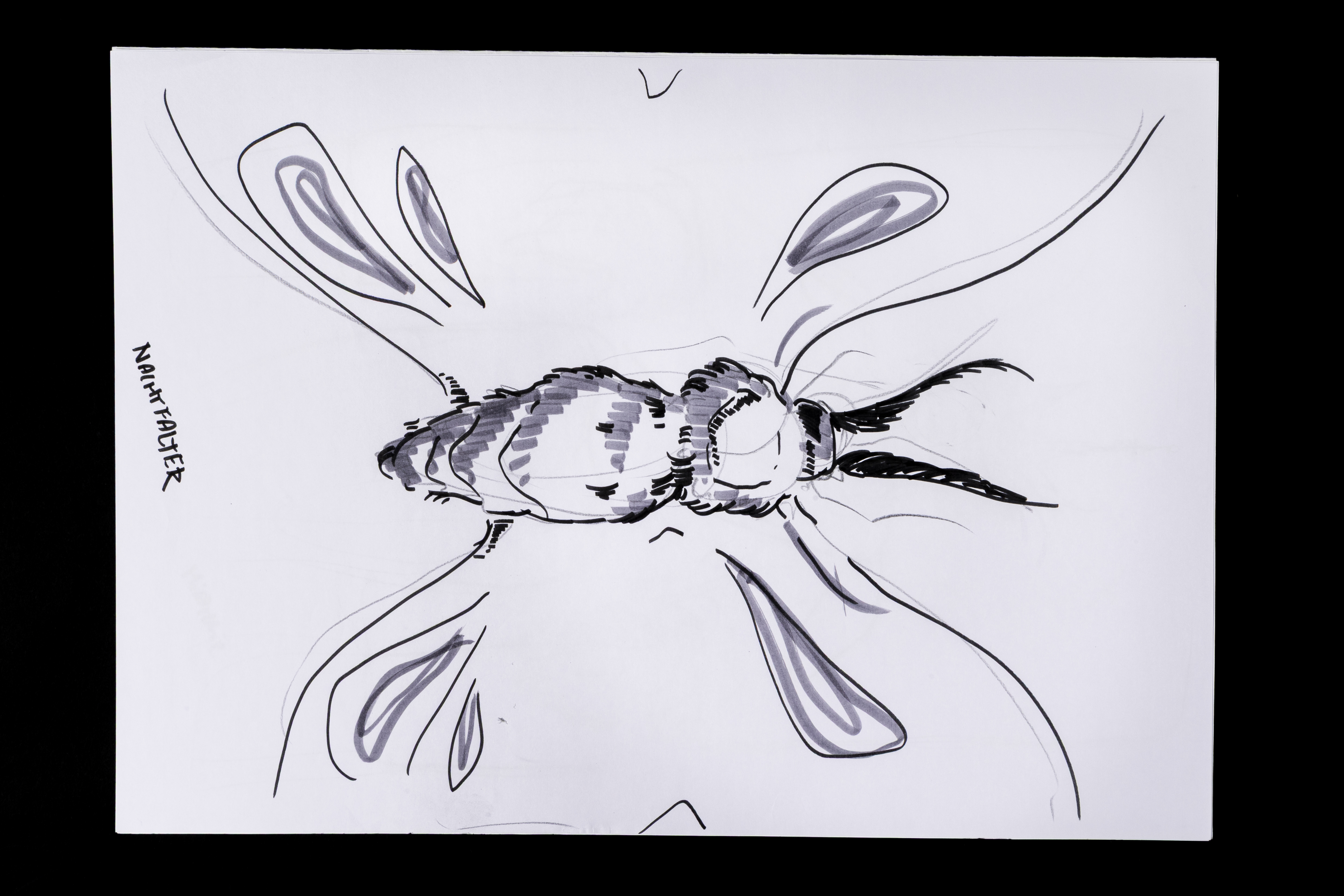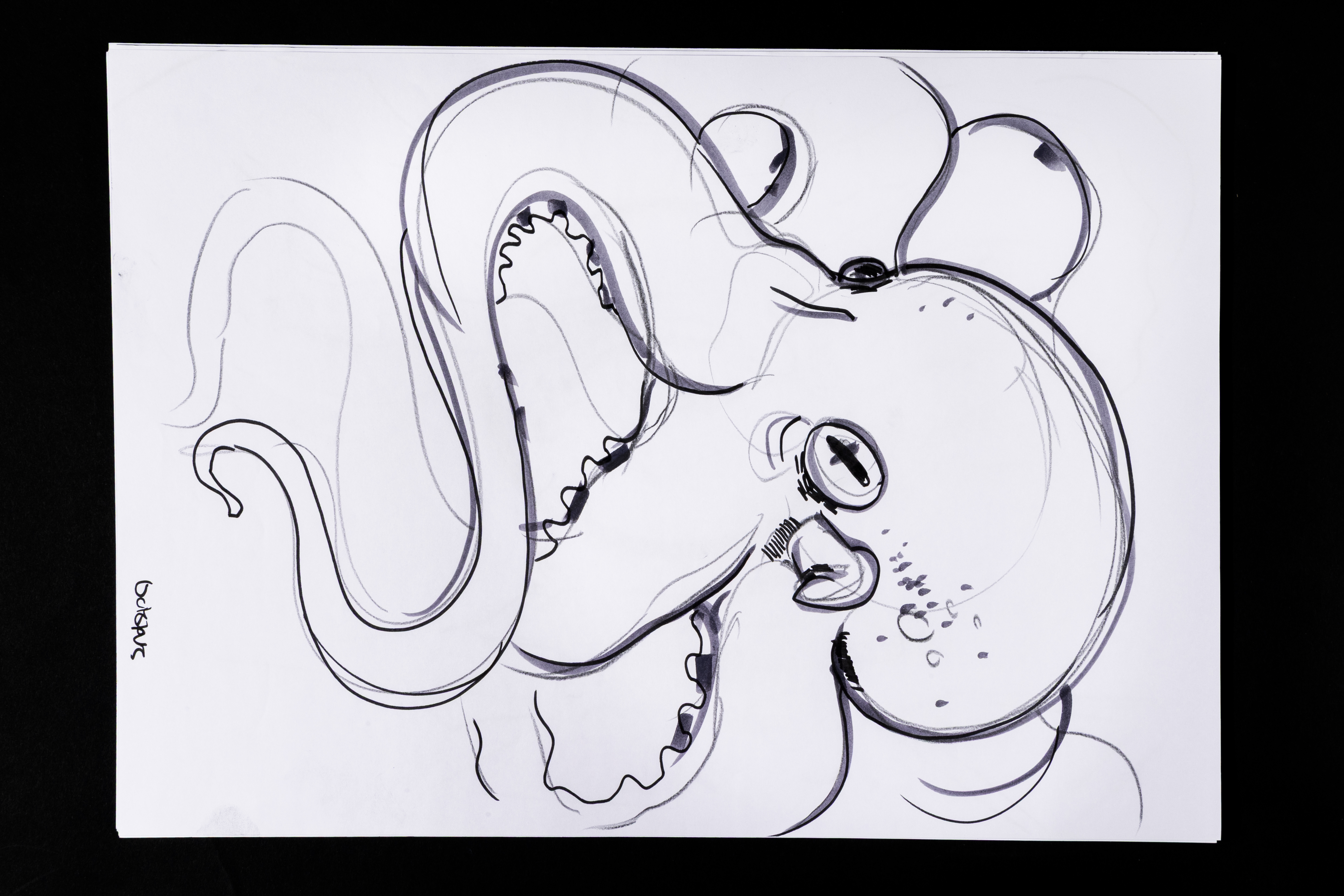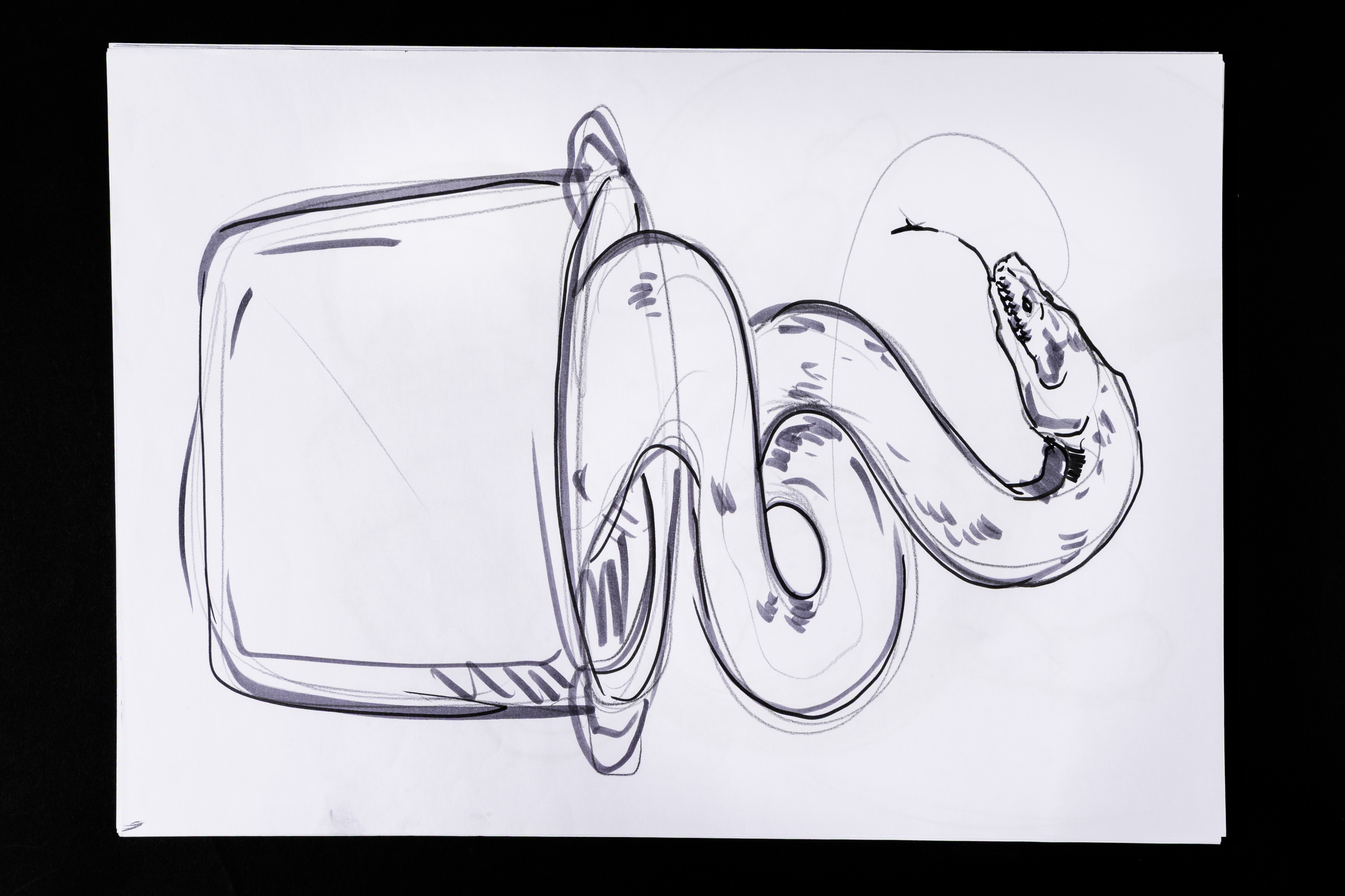 Dieses Projekt setzt sich mit der Spontanität auseinander sowie einer unmittelbaren visuellen Idee. Die zentrale Aufgabe war es, das spontane und schnelle Denken später in eine dichte und visuell ansprechende Komposition zu übersetzen. Der Prozess basiert auf einem klaren, zweistufigen Vorgehen: Zuerst entstanden rund 70 Einzelmotive, die jeweils unter Zeitdruck, zwei Minuten (etwa pro zufälligen Begriff), frei aus dem Kopf gezeichnet wurden. Die eigentliche kreative Leistung bestand in der Montage des Plakates: Diese Fülle an unterschiedlichen Zeichnungen wurde in einem späteren Schritt im grossen Format zu einem organischen Ganzen zusammengesetzt. Die daraus resultierende visuelle Dichte ist die Konsequenz dieser Zusammensetzung. Die Komposition lädt den Betrachter ein, im visuellen Strom der Zeichnung eine Verbindung zu finden und die rohe, ungefilterte Idee hinter dem Endprodukt zu erleben.