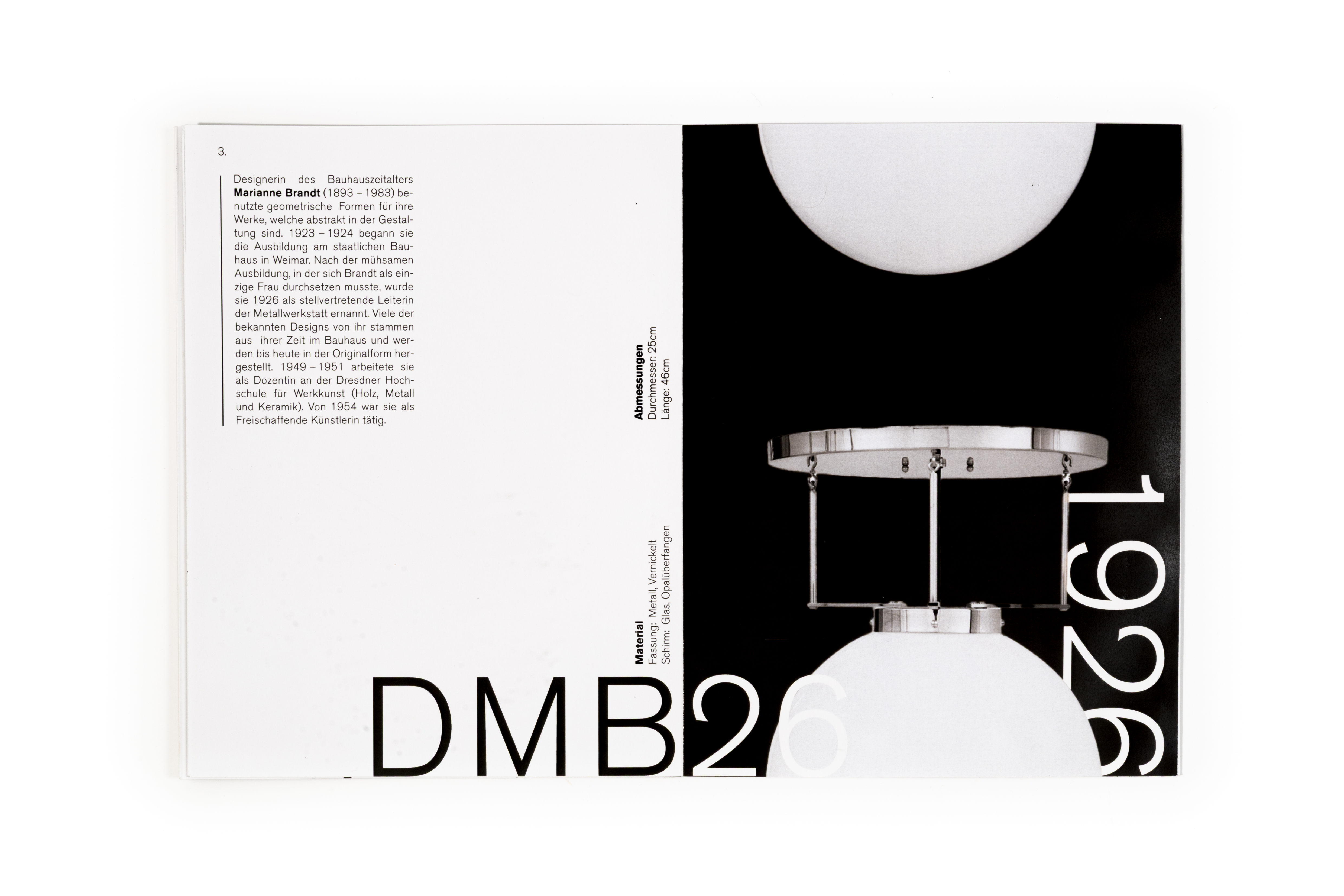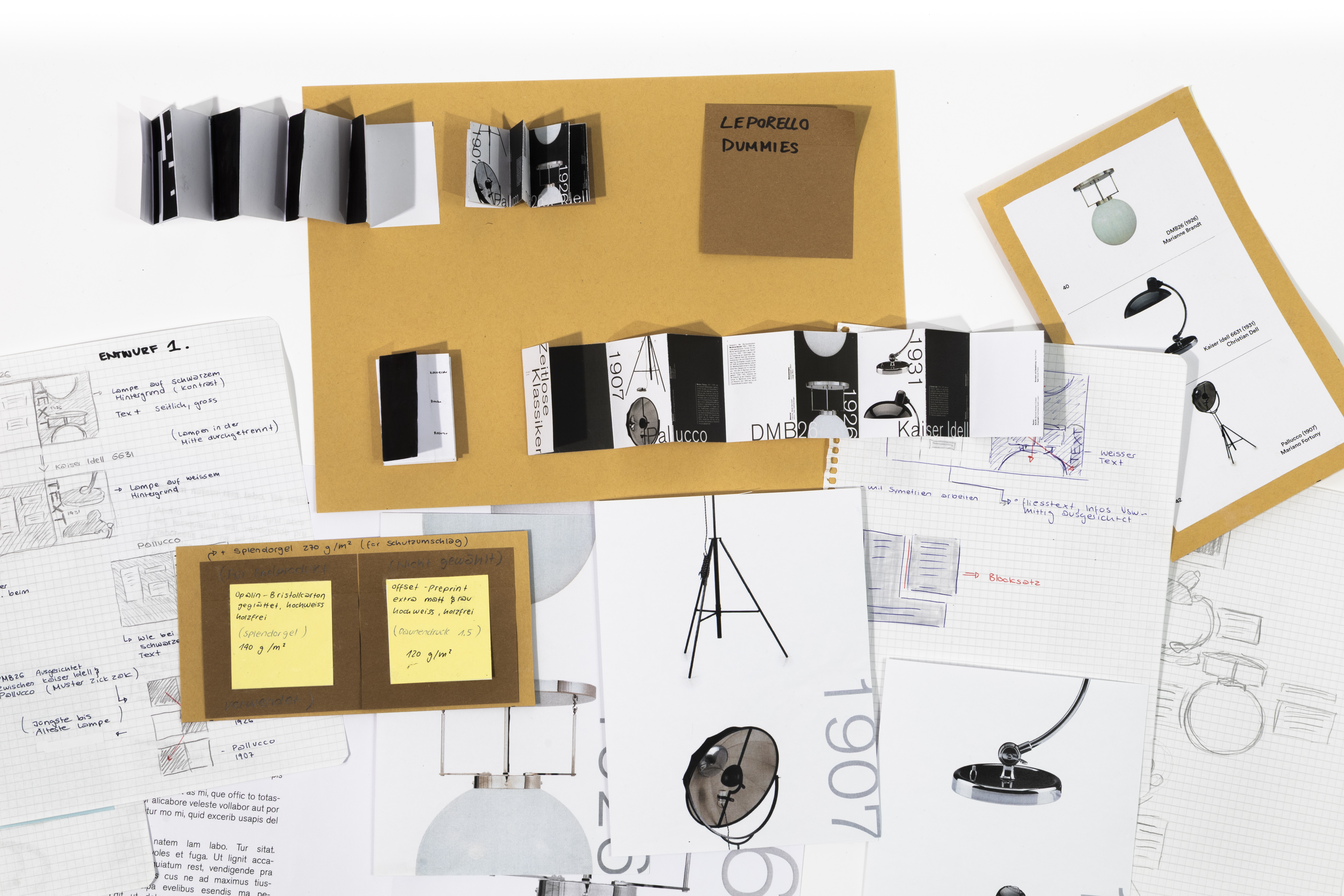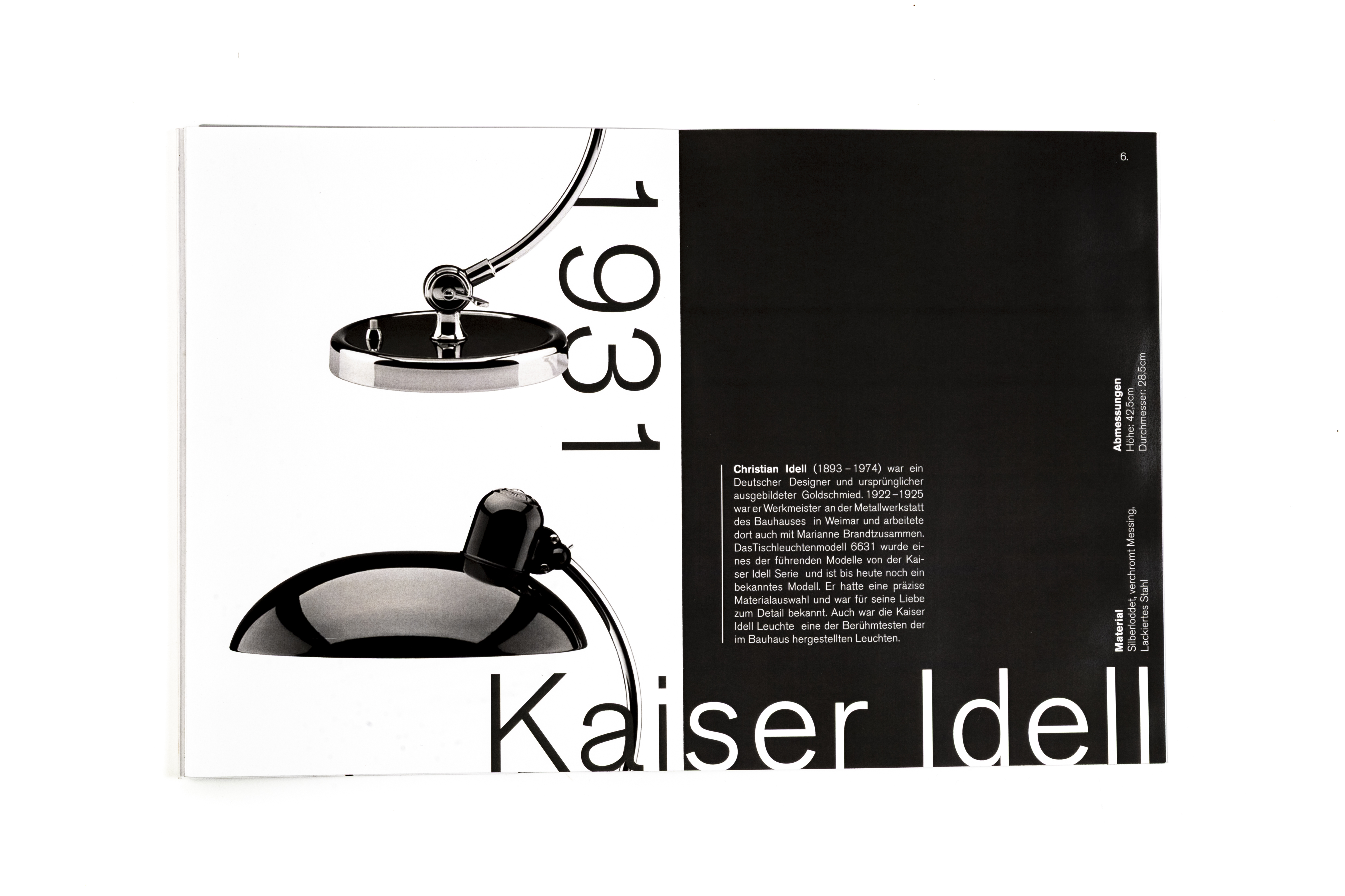 Beim folgenden Projekt wurde der Umgang mit Form, Weissraum, Format, Text und Farbe als gestalterische Einheit untersucht. Diese entwickelte Gestaltung wurde anschliessend in ein Leporello übertragen, das sowohl als Einzelseiten, als auch als zusammenhängendes Buch funktioniert. Die Anordnung der Bilder im Leporello folgt einem klaren Muster: Jeder Anschnitt der Lampenbilder orientiert sich an den unteren und oberen Seitenrändern, wodurch ein rhythmischer Aufbau im Layout entsteht. Durch das gesamte Leporello hindurch wechseln sich die Ausrichtungen der Lampen ab. Die weisse Lampe erscheint auf schwarzem Hintergrund, während die beiden anderen Lampen auf weissem Hintergurnd dargestellt sind. So entsteht ein beständiger Kontrast, der dem Layout einen harmonischen Fluss verleiht. Je nach Perspektive zeigt das Leporello überweigend weisse oder schwarze Flächen – seine Wirkung verändert sich mit der Perspektive des Betrachtenden.