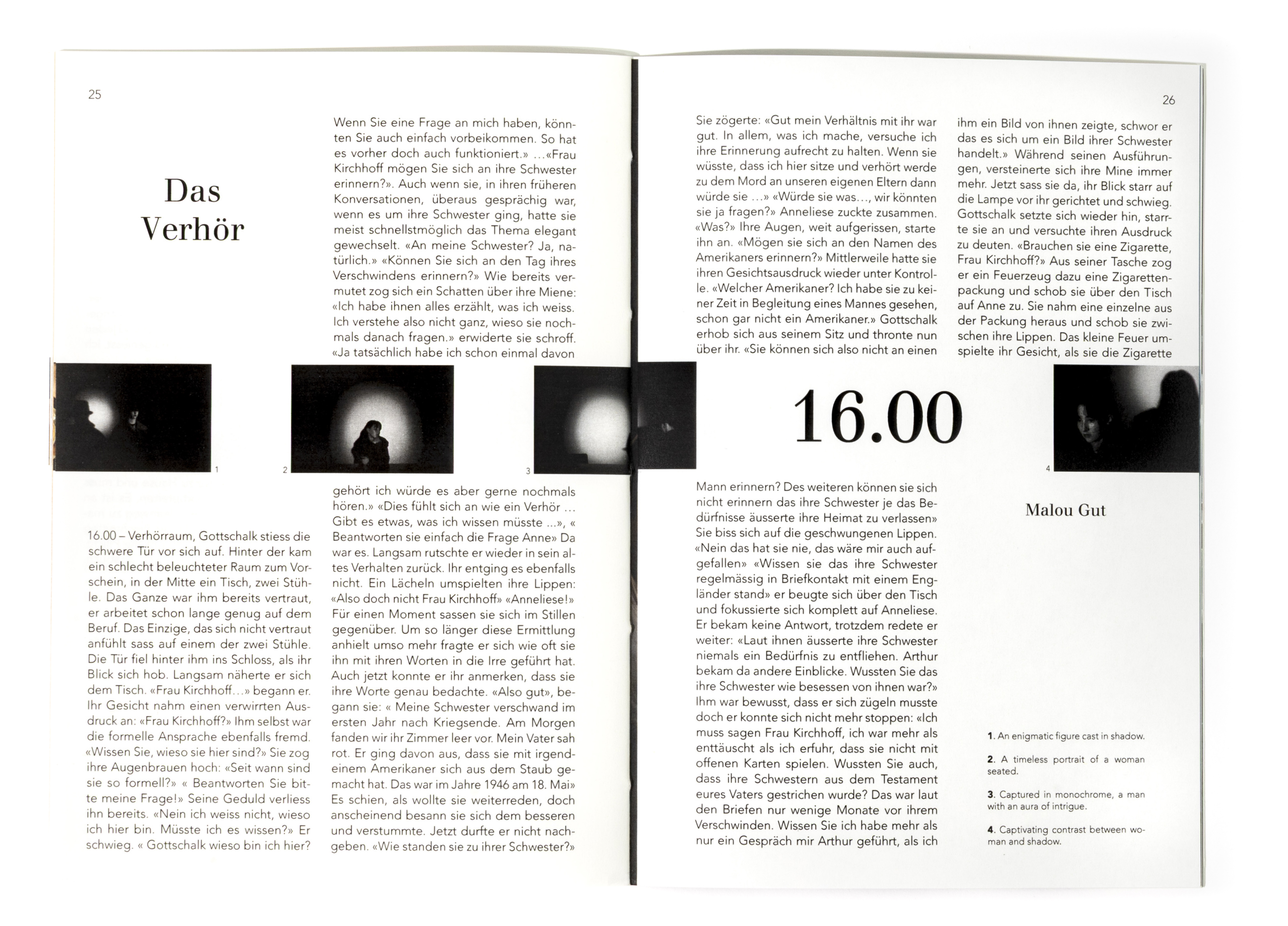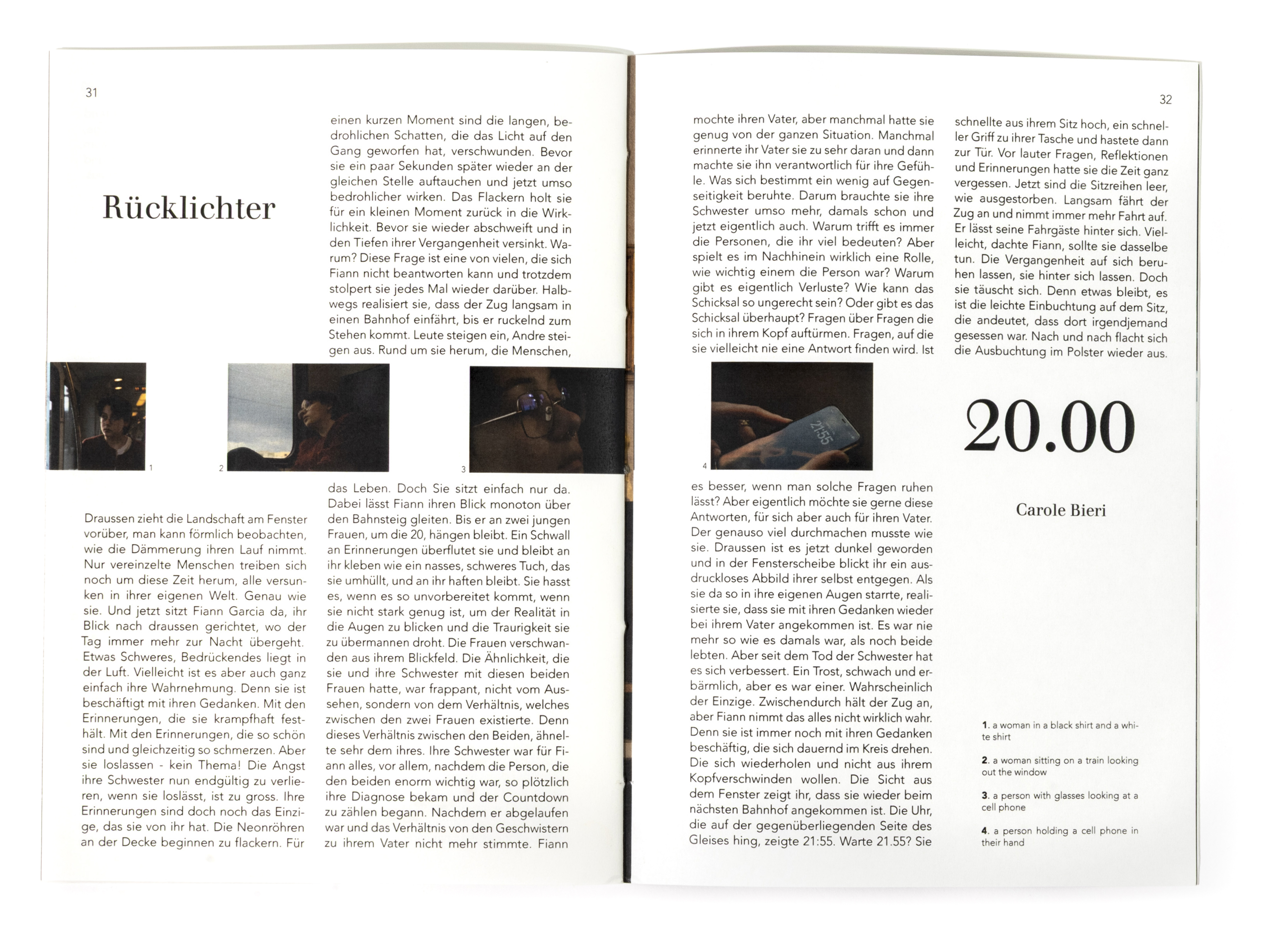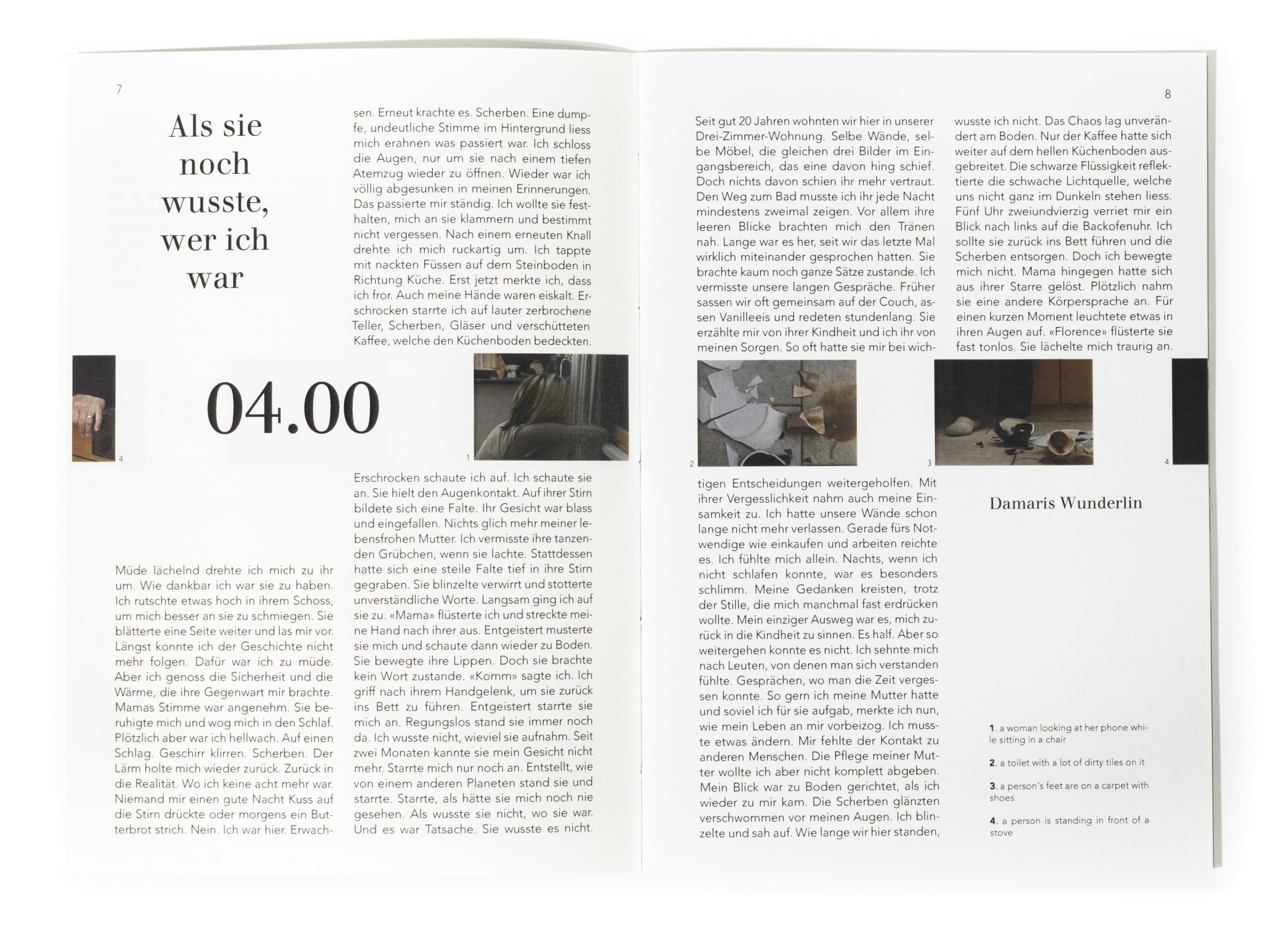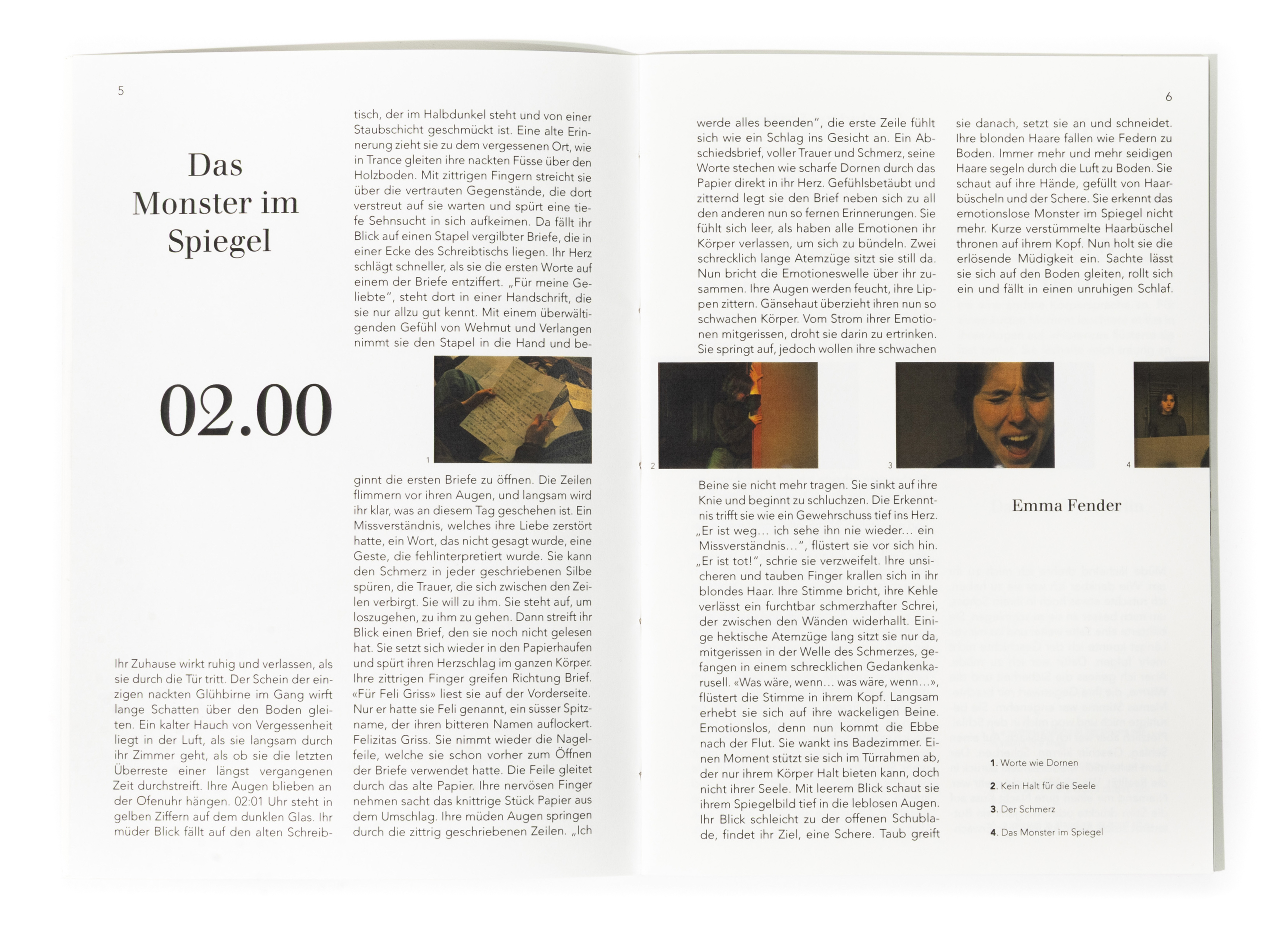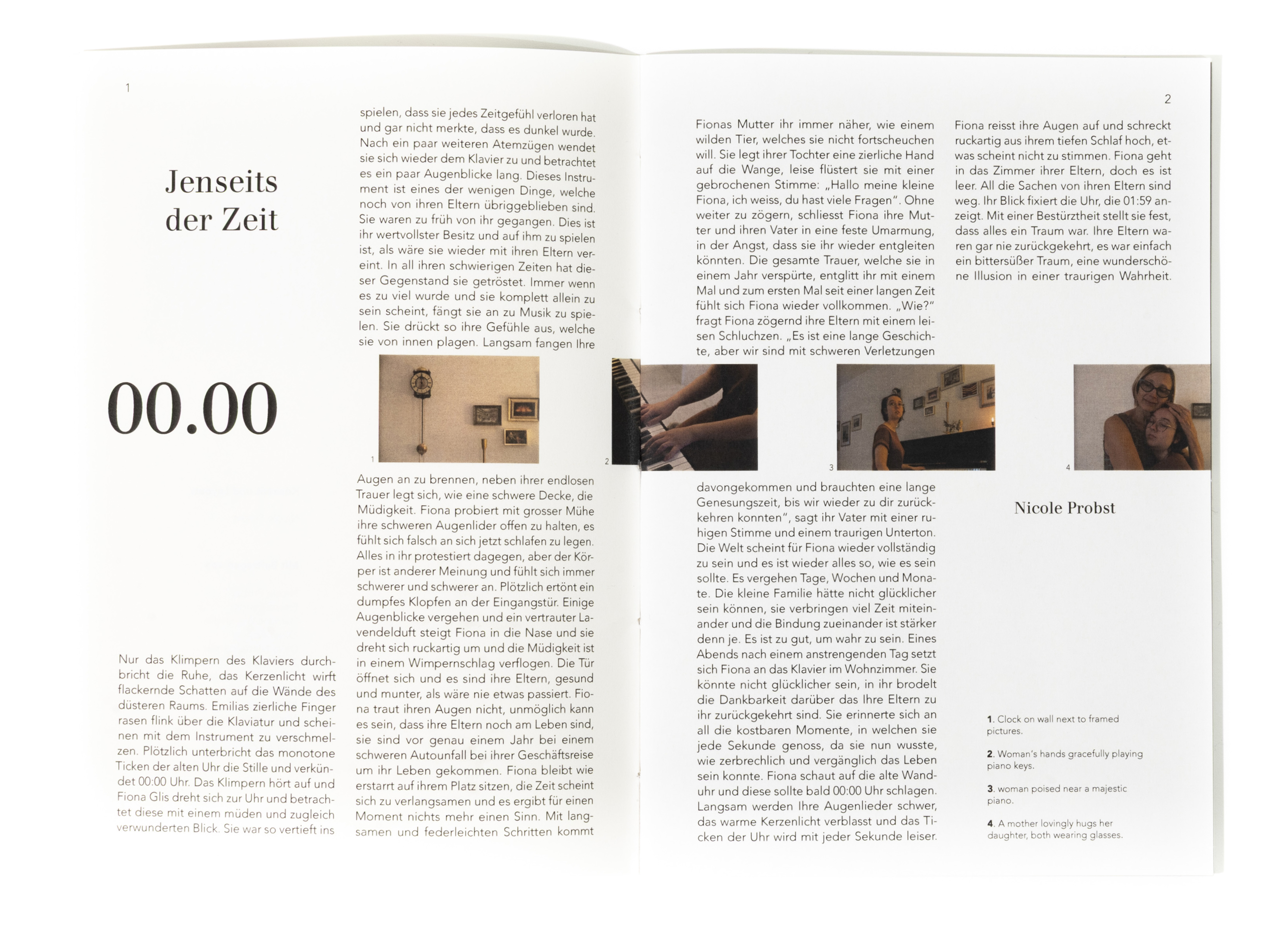 In diesem Projekt stand die Auseinandersetzung mit dem Thema Zeit im Zentrum. Ausgehend von der Überlegung, dass Zeit unaufhaltsam voranschreitet und sich gleichzeitig in Zyklen wiederholt, entstand ein Buch, das diesen Rhythmus visuell übersetzt. Innerhalb eines 24-Stunden-Ablaufs bewegt sich der Inhalt im Zweistundentakt voran. Die Gestaltung folgt einer kontinuierlichen Bewegung. Die Positionen verschieben sich von Seite zu Seite, wodurch ein fliessender Übergang zwischen den einzelnen Zeitpunkten entsteht. Die Bildabfolge bleibt nicht statisch, sondern scheint mitzuwandern, als würde sie dem Verauf der Zeit folgen. Keine Seite gleicht der anderen, und der Ablauf bleibt trotz seiner Struktur dynamisch und organisch. Ziel war es, die Zeit im Medium der Bilder erlebbar zu machen. Durch eine gleichmässige, konstante Veränderung wird der Tagesablauf nicht nur dargestellt, sondern räumlich und visuell spürbar. Jede Geschichte bewegt sich innerhalb ihres eigenen Zeitfensters und entwickelt dabei einen individuellen Bildrhythmus, der ihren Charakter bestimmt.